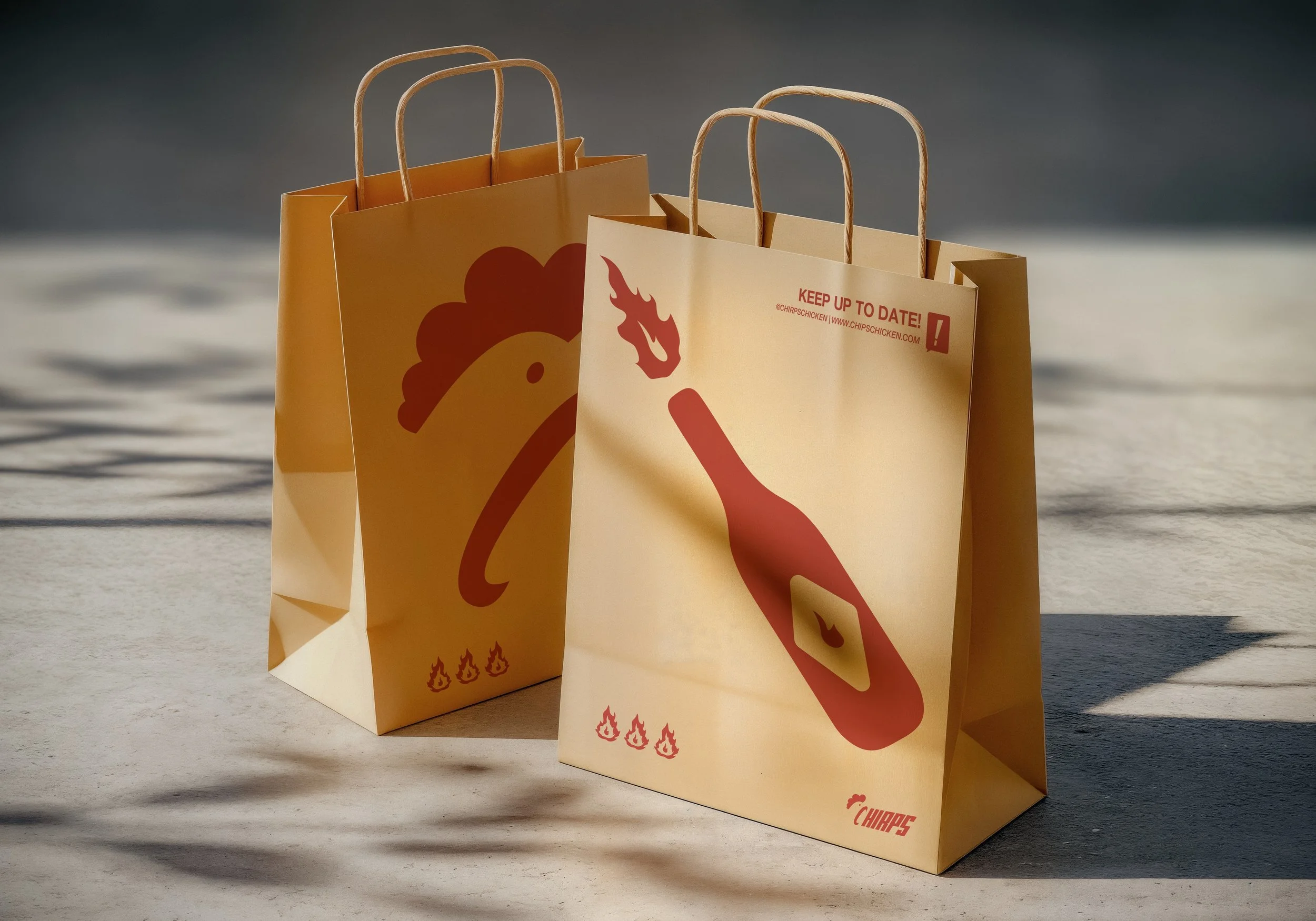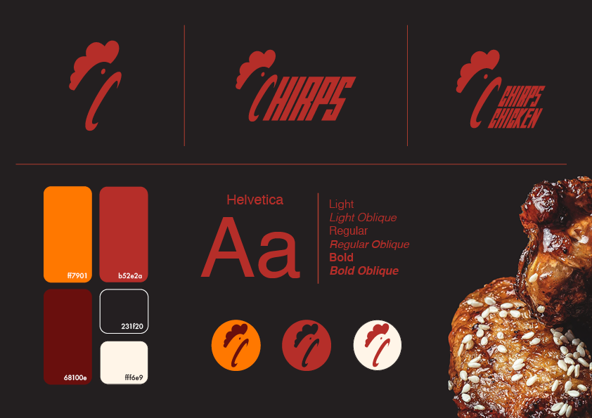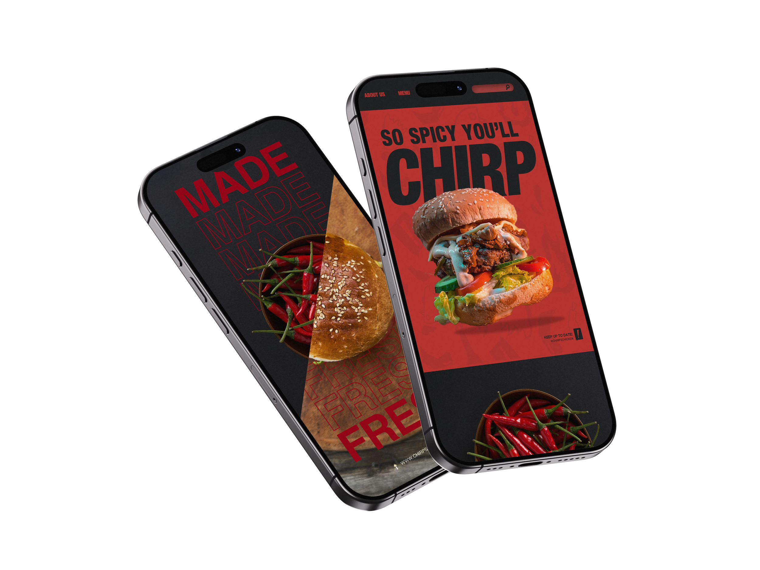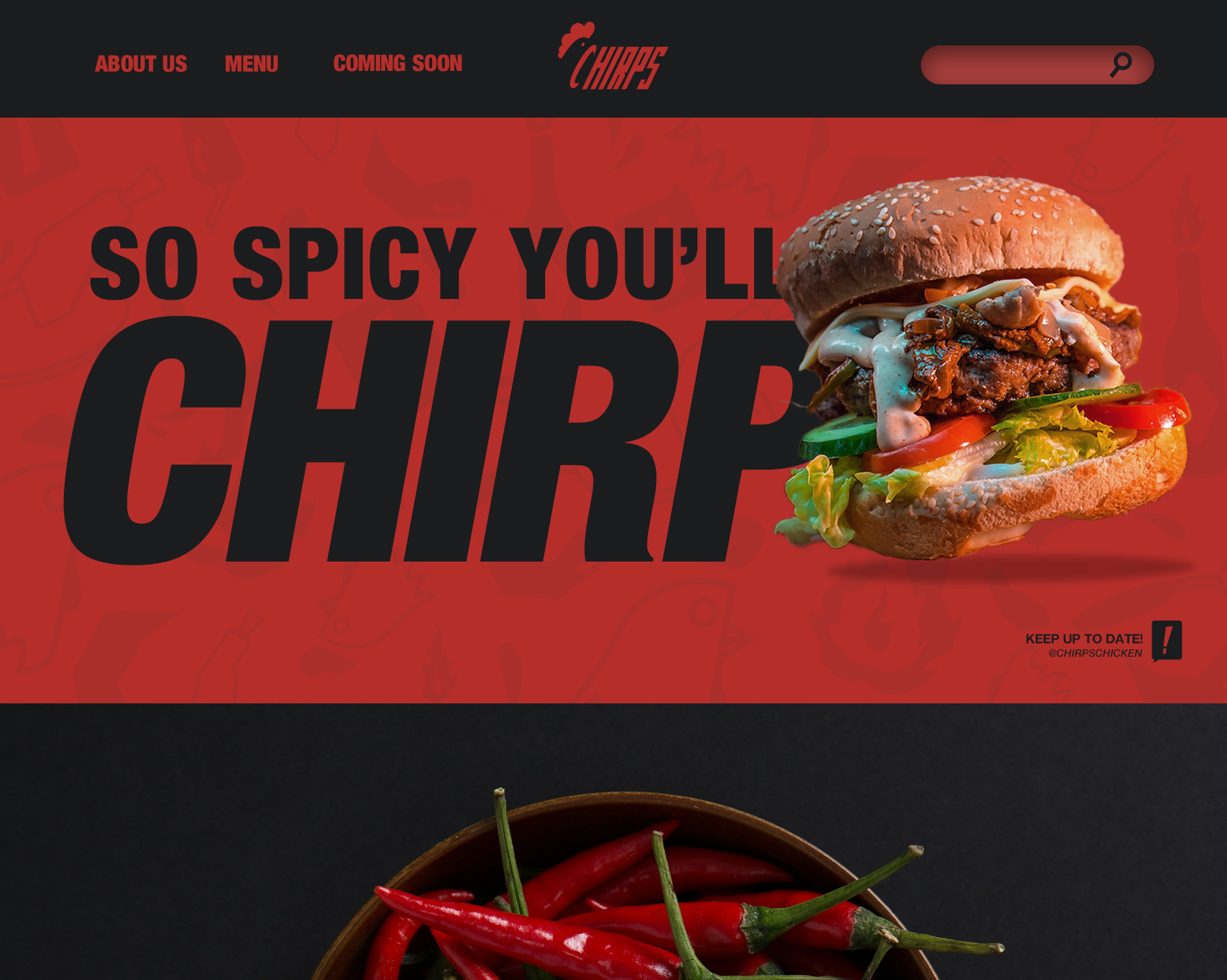 When approaching the design, I strived to create a visual atmosphere centred around the feel of home cooked chicken and eating with the family. When I think of the relationship between food and family, I am reminded of two brother’s daring and challenging each other across the table. This general approach inspired the bold red aesthetic and fiery patterns used throughout the brand identity.