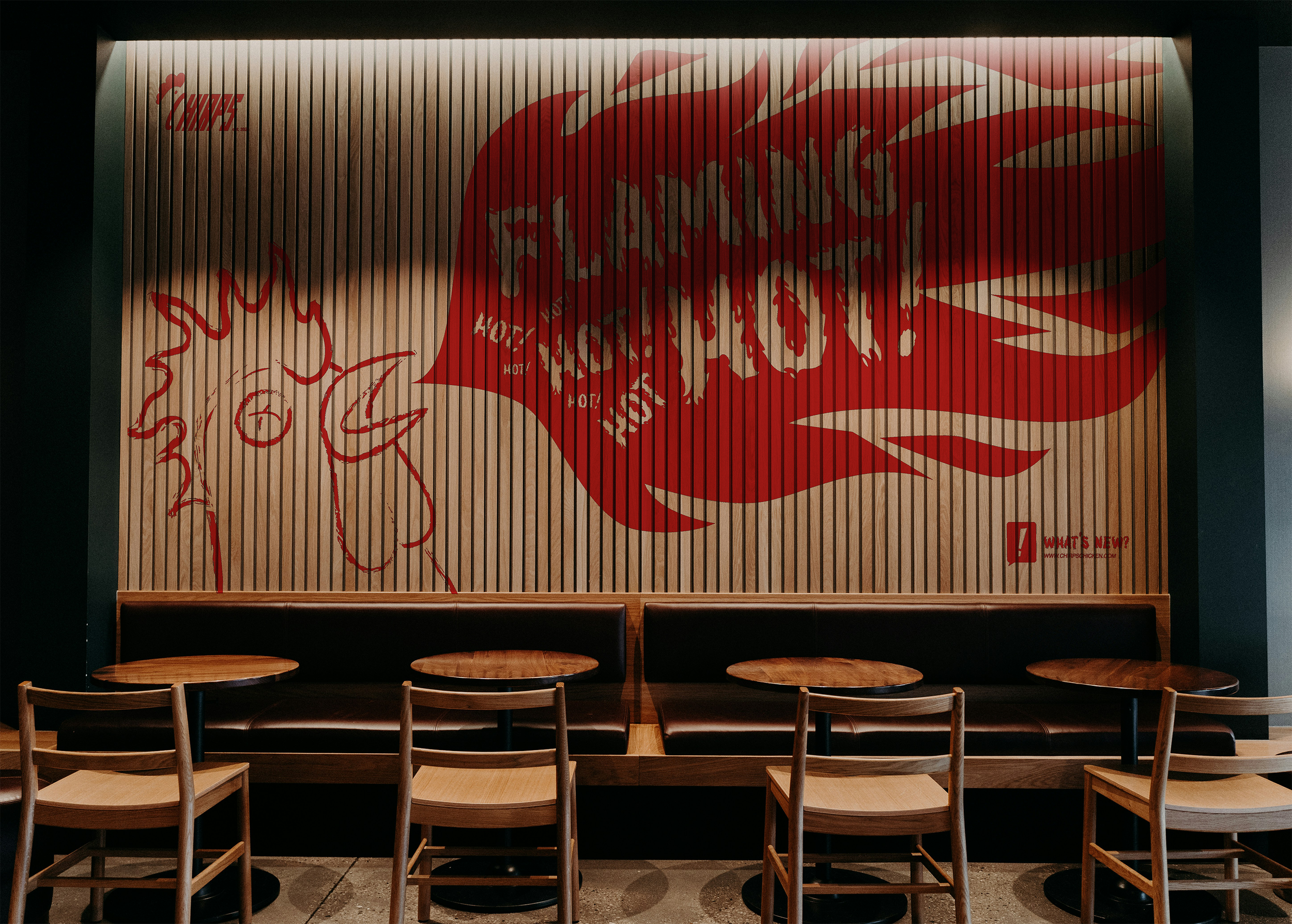 Due to this, my goal was to create a dining experience that not only enticed audiences but challenged them in their eating endeavours; how much can you eat and how spicy can you go? Therefore, naturally the design took shape surrounded by red hot flames and spice, in hopes for a friendly, yet competitive, community.